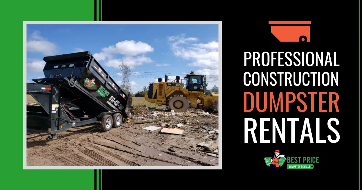Best Price Dumpster Rentals offers dumpster solutions to construction companies. We are a construction dumpster rental company with the right equipment to dispose of waste. You can rent dumpsters or even hire our pick-up service where we can transport your debris to where it needs to go. Our goal is to make the process smooth and stress-free. We make sure to streamline the process to operate fast and in the shortest time frame possible.